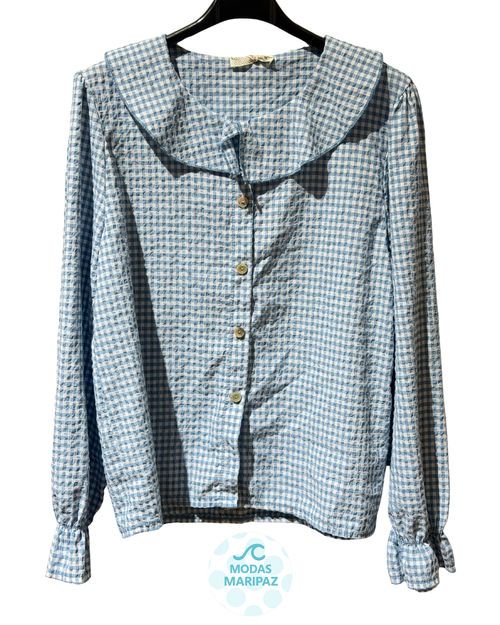 BLUSA VICHY CUELLO BEBÉ CELESTE