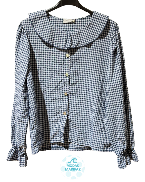 BLUSA VICHY CUELLO BEBÉ AZUL MARINO