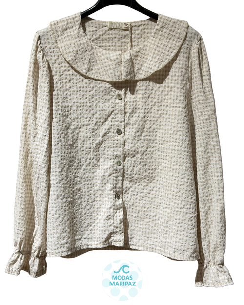 BLUSA VICHY CUELLO BEBÉ BEIGE